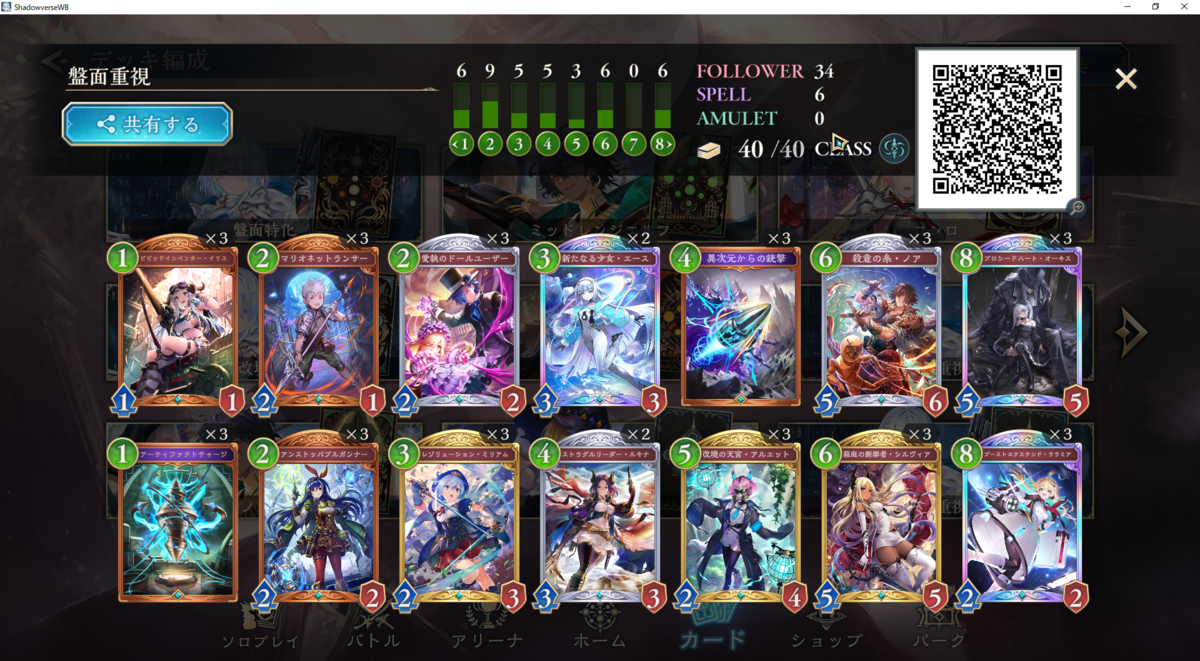 また、エルフの除去は対象を取るものがほとんどなので、ララミア、オーキスで凌いで進化権を全て奪った後にΩを投げると相手はΩが取れずに詰みます。削り切りが狙えないかつ、ララミアのボードを返された場合はこれがゴールになるので、10ppでΩが投げれるように準備を進めておきましょう。