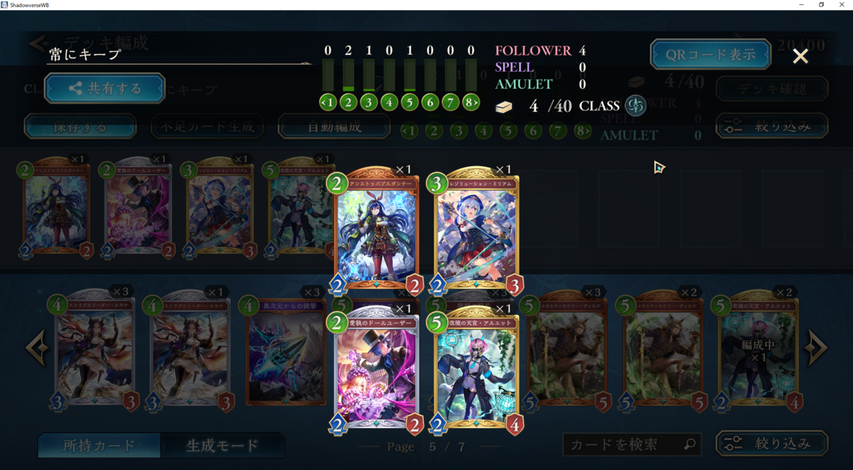 ※アルエットに関してはウィッチ対面のみキープ非推奨です。アルエットは5ターン目に進化を切ることで盤面圧力をかけられる最強カードです。しかし、ウィッチ対面に関しては、アングレアで簡単に返されてしまいます。また、序盤に低コストを並べてライフを詰められるかどうかが重要なマッチであります。そのため、序盤の動きとセットなら持ってもいいかも程度に考えておくとよいです。